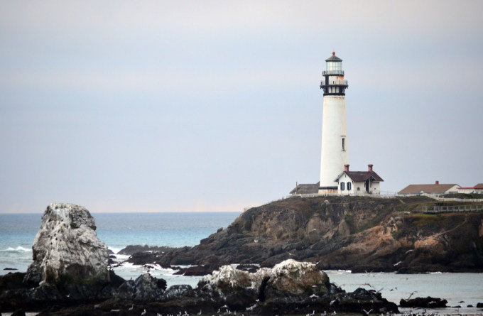 一号公路开始不久,就到了一个古老的灯塔,是美国太平洋海岸线上最高的灯塔并且至今仍然在使用中,并且免费参观。每年11月,这里举行一次利用煤油灯和透镜发光的方法来点灯的活动,也是100多年前人们采用的的点灯方法。而且这里真的是一个适合拍照出片的地方。