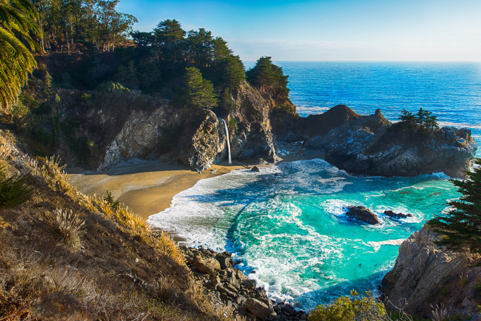 爱旅游的人绝对听说过大苏尔,它是加州1号公里上最美的景致,它的宁静、自然、清新、超凡脱俗、与世隔绝,都是这个世界上独一无二的,它是真正的世外桃源。大苏尔(Big Sur)是一号公路最美也最不可错过的一段, 是世界上最令人终身难忘的海岸,也可以说是一号公路提前到来的高潮。大苏尔海岸从卡梅尔小镇 (Carmel) 绵延至赫氏古堡 (Hearst Castle),全长约 90 英里,象海豹、红杉成林、海雾迷漫、没有清楚的边界,没有城市核心,它有一股神奇的魔力,吸引着游客(包括 Henry Miller、“跨掉的一代”代表作家 Jack Kerouac)。峭壁、大海、蓝天——简而言之,这里就是您最想要来的地方。