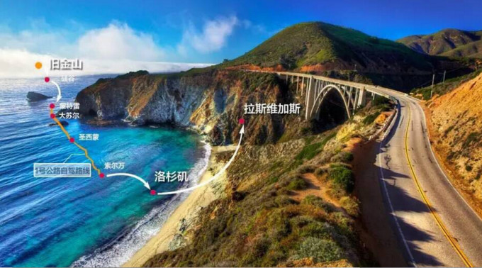 推荐驾车路线:旧金山 → 蒙特雷 → 17里湾风景线 → 卡梅尔 → 大苏尔 → 索尔万 → 圣巴巴拉 → 马利布 → 洛杉矶